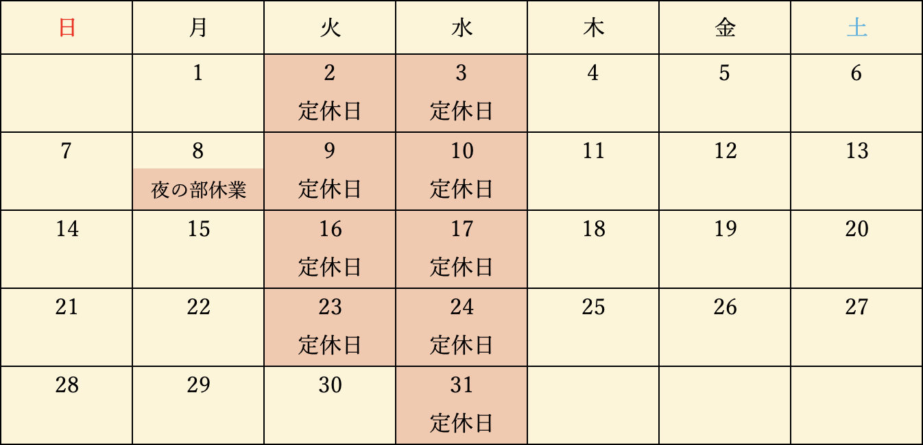 12/8(月)は夜の部休業させていただきます。